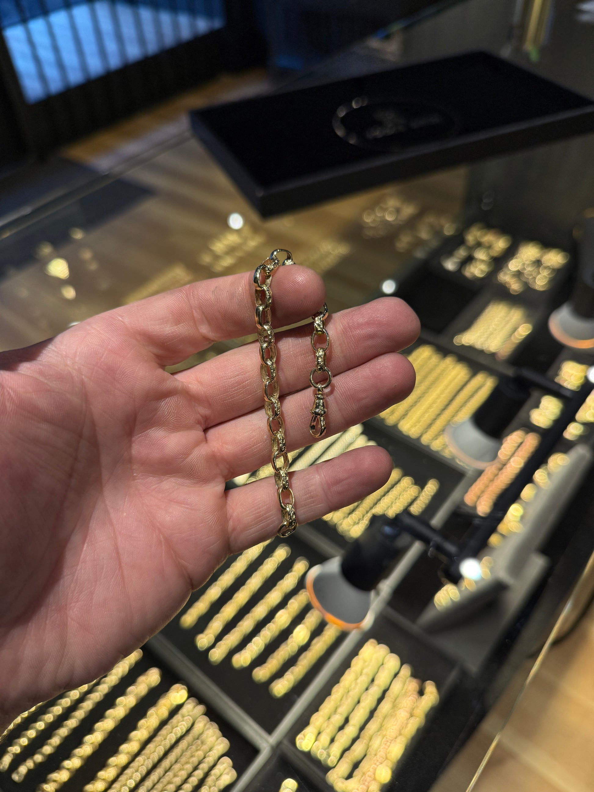 This brand new 9ct Gold Belcher Bracelet is a classic, versatile piece that adds timeless style to any jewellery collection. Crafted with solid 6mm links and weighing approximately 9.2g, it's perfect for everyday wear or as a standout gift. Fully hallmarked with the 375 stamp, this bracelet is designed to offer both beauty and long-lasting quality.